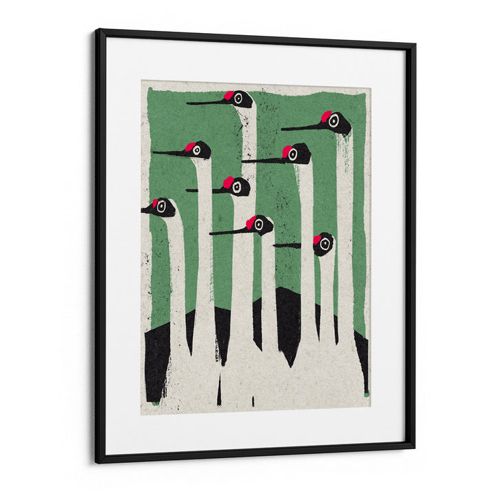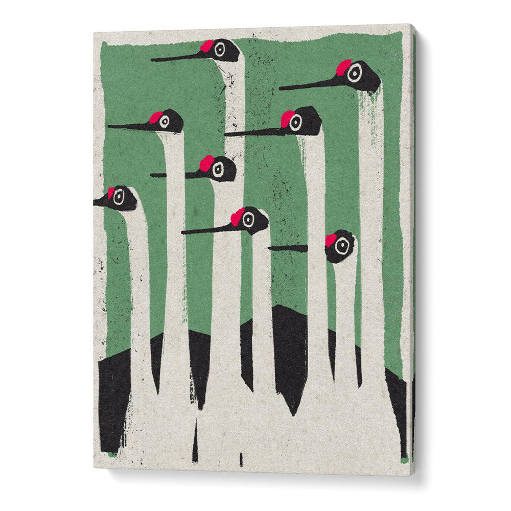 graphic bird art, mid-century modern poster, crane wall art, minimalist animal print, green and red wall decor, vintage style art print, clean geometric art, animal canvas print