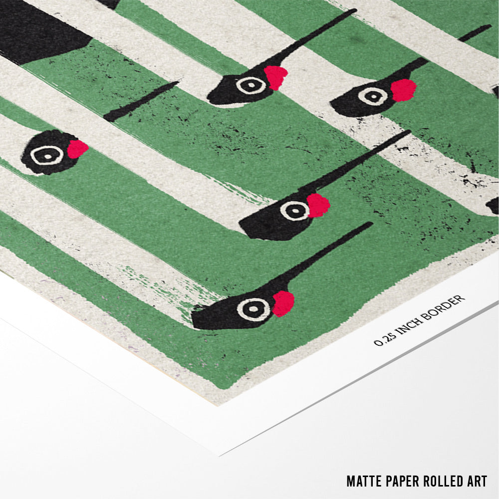 The Flock – Bold Graphic Bird Wall Art Print in Green, White, and Red