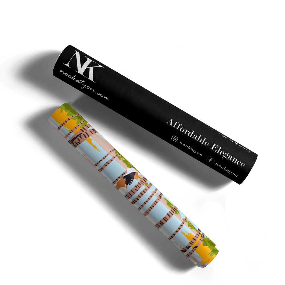 Bright, carefree, and filled with warmth, The Happy Spots is a vibrant Boho painting on wall that captures the simple joy of being present in nature. Set among tall palm trees and open skies, the artwork portrays a relaxed figure and companion in a sun-washed landscape, evoking feelings of freedom, travel, and light-hearted living. Perfect for homes that celebrate colour and positivity, this piece instantly lifts the mood of any space.