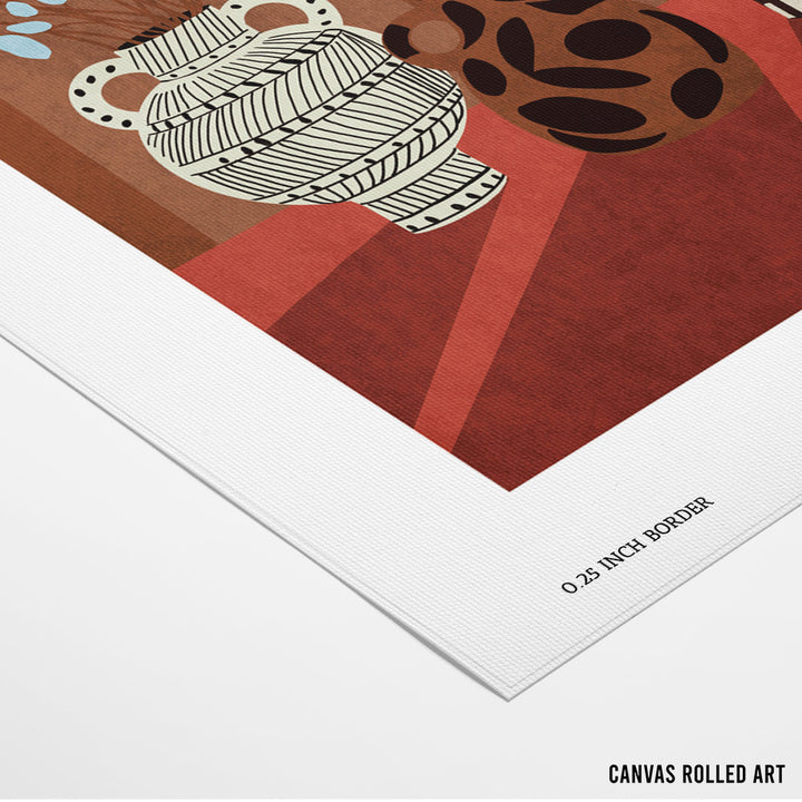 boho art, terracotta wall decor, abstract vase artwork, earthy modern poster, Mediterranean home style, tribal pattern art, rustic wall print, warm-toned decor, ceramic vase art