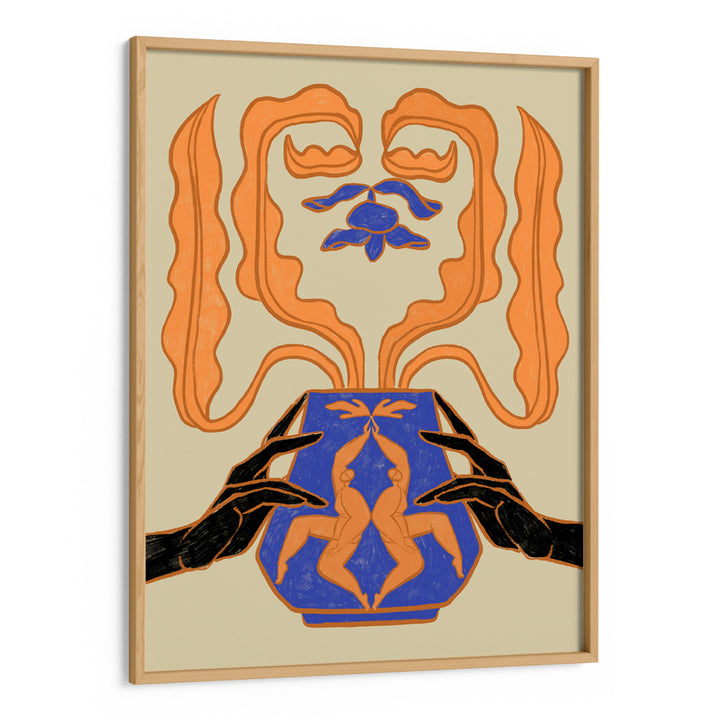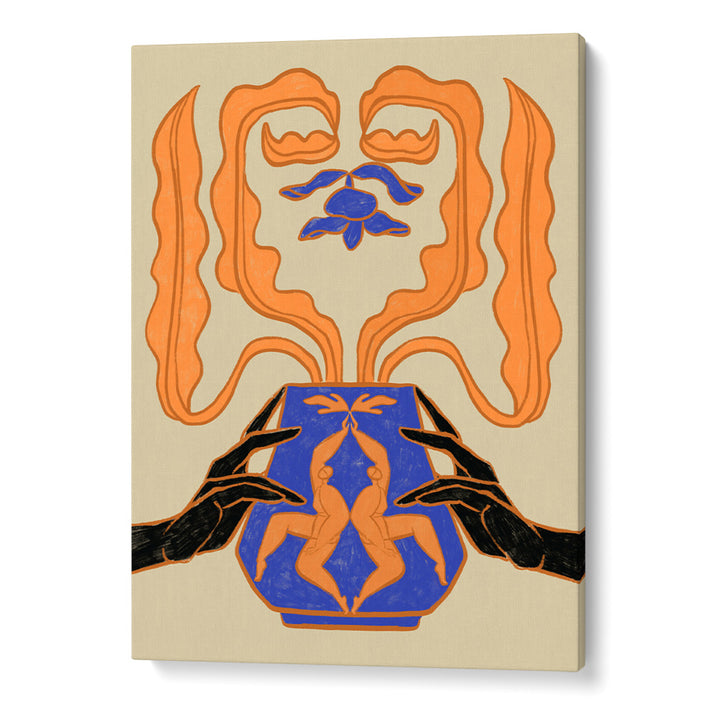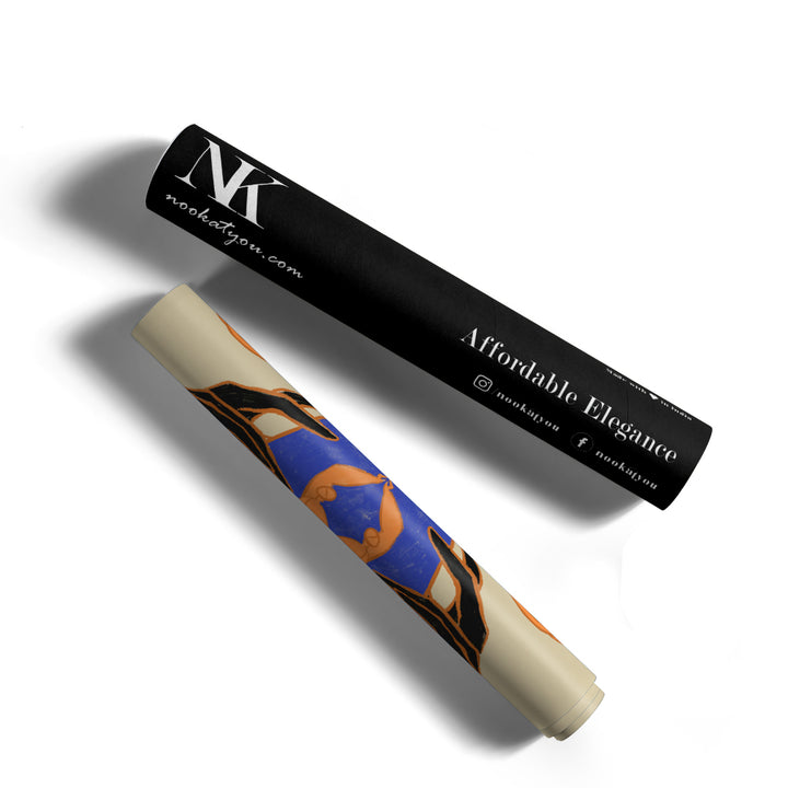 Discover the mystique of the Vessel Collection, a bold and symbolic boho artwork that combines surrealist figures, fluid linework, and earthy tones. With two mirrored bodies inside a deep blue vessel, framed by flowing orange forms and contrasting black hands, this artwork explores themes of creation, transformation, and duality. Perfect for eclectic interiors, yoga corners, or mindful living spaces, it serves as both décor and conversation starter.