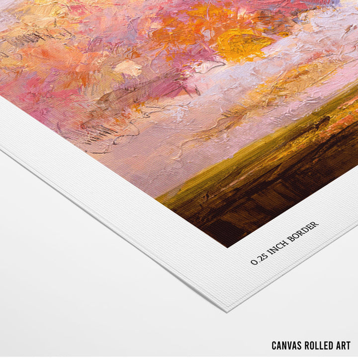 abstract landscape canvas, textured painting print, vibrant pink art, sunset wall decor, impasto style abstract, expressive modern art, colorful horizon art, bedroom statement canvas