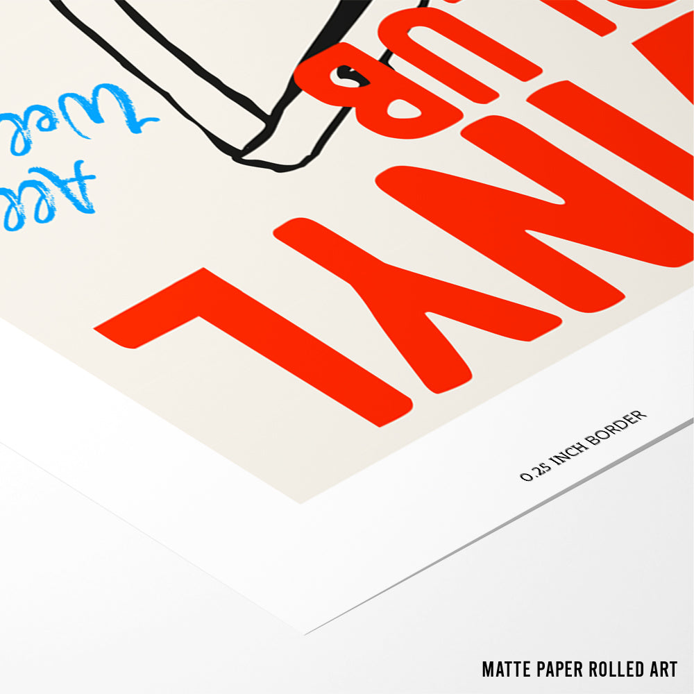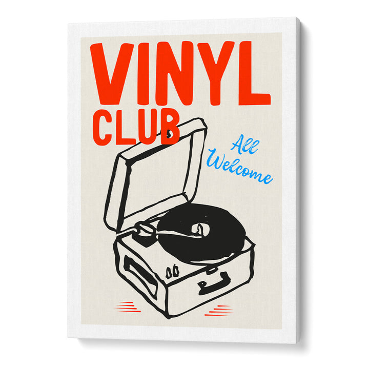 Celebrate the analog age with the Vinyl Club Wall Art. This canvas print features a cool, retro illustration of a portable record player and the bold, inviting message: "VINYL CLUB, All Welcome." The striking combination of vibrant red, classic black, and raw canvas beige makes this piece the perfect statement for any music enthusiast, DJ, or retro decor lover. Hang it in your dedicated listening room, living room, or entertainment area for instant cool factor.