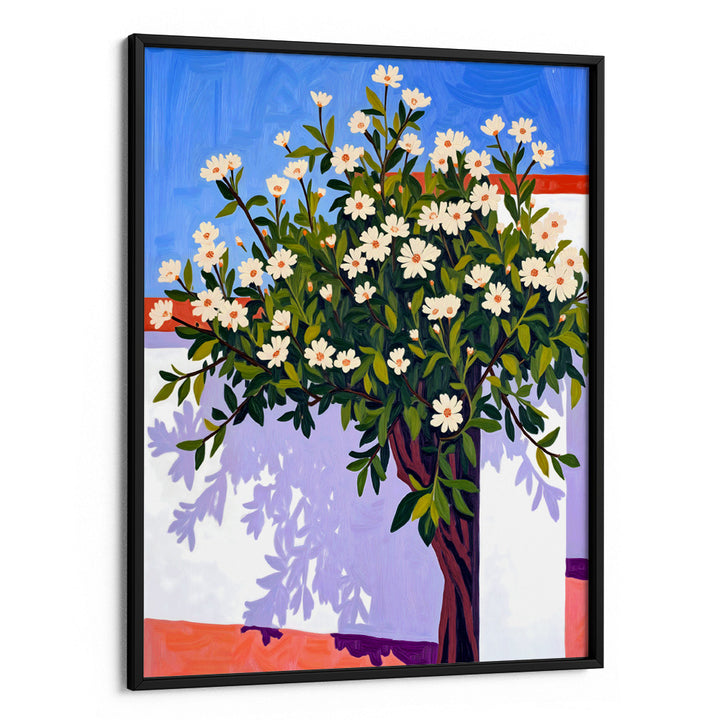 Bring home the softness of nature with Where Shadows Bloom, a serene botanical wall art piece featuring a blooming tree casting gentle shadows against sunlit walls. This artwork blends warm florals, cool lavender tones, and Mediterranean-inspired textures—perfect for anyone who loves Botanical art posters, calming color palettes, and nature-themed interiors.